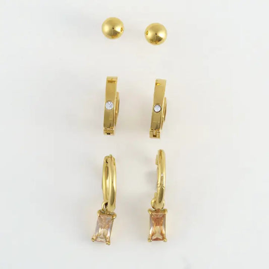 Narelle Waterproof Double Linked Hoop Earring Trio