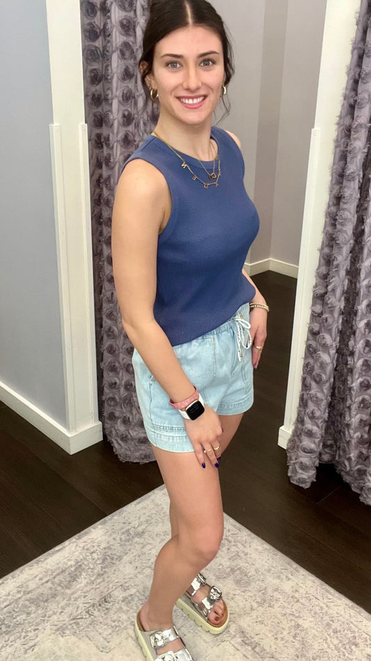 Sunny Stroll Chambray Shorts in Medium Wash by Dex