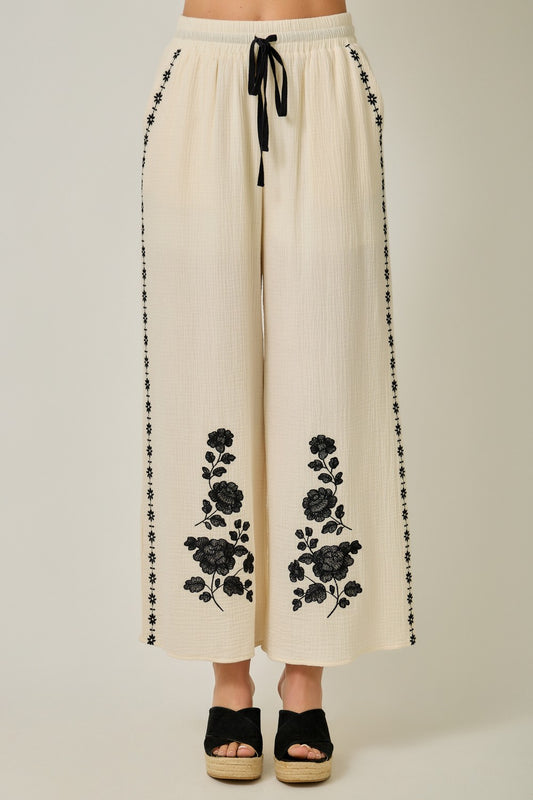 Sweet Escape Embroidered Cotton Gauze Pants in Ivory by Mystree