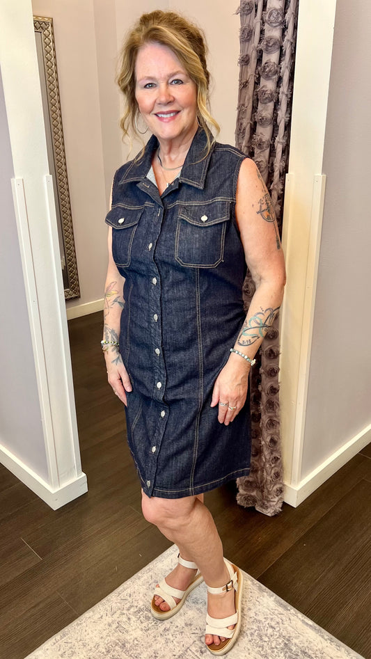 Wisteria Tencel Dress in Light Denim Wash by Thread & Supply