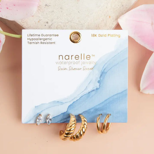 Narelle Waterproof Rectangle Hoop Earring Trio