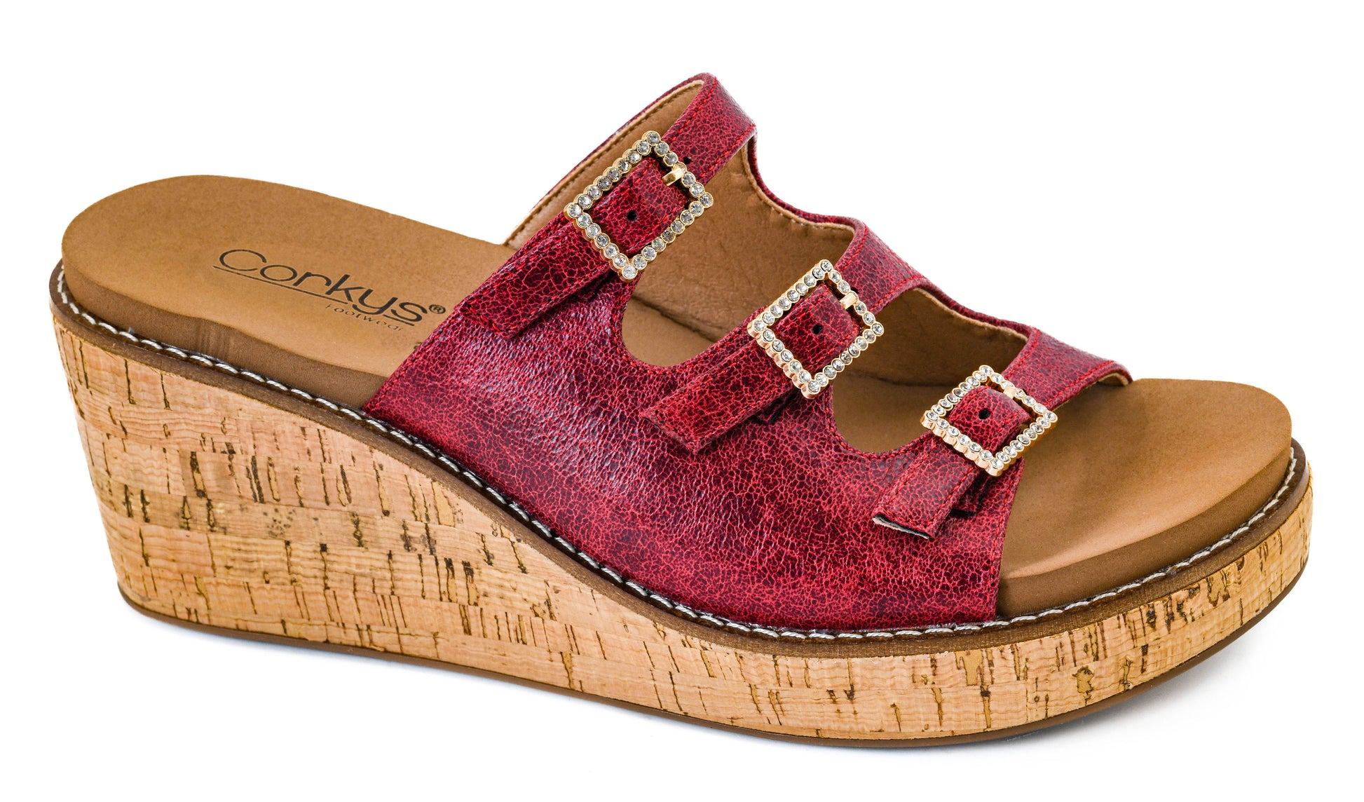 This red crinkle cork wedge is basically a confidence boost you can buckle into.