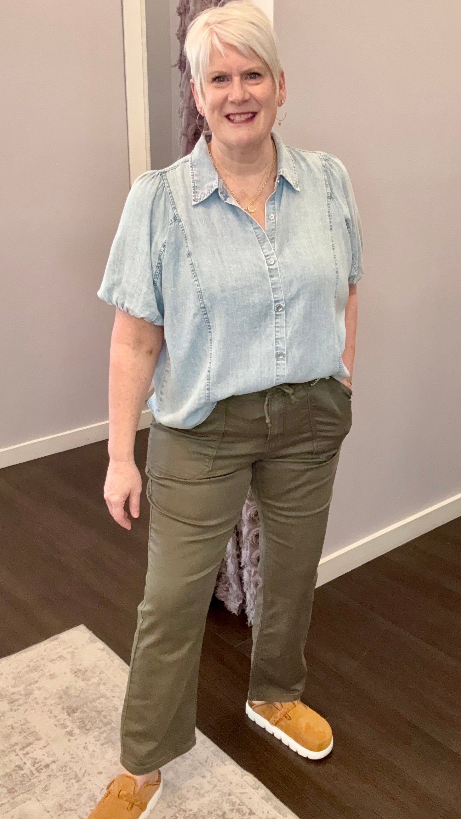 Done in a rich olive tone, these act like a neutral but add more depth and style to your outfit. The earthy color pairs effortlessly with everything from soft neutrals to brighter statement tops, making styling feel simple and stress-free.