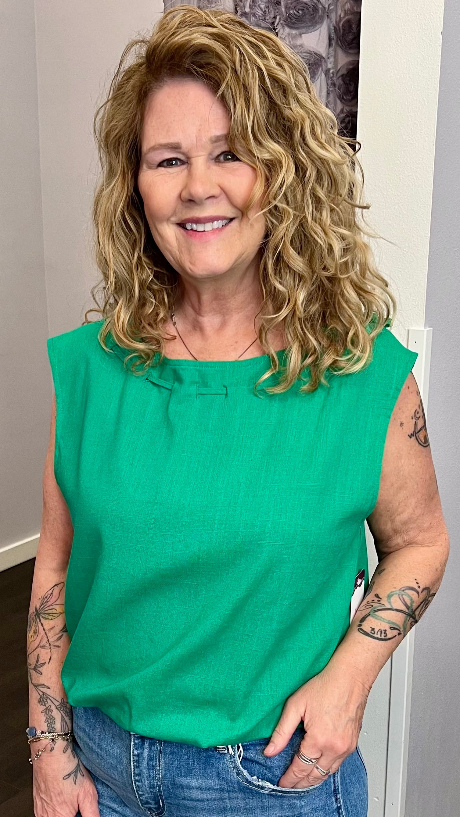 A fresh pop of green and an easy polished fit? Yes please! This sleeveless top features a fun tie-neck detail and lightweight feel that makes getting dressed a breeze. Perfect with white denim, shorts, or trousers for an effortlessly put-together look.