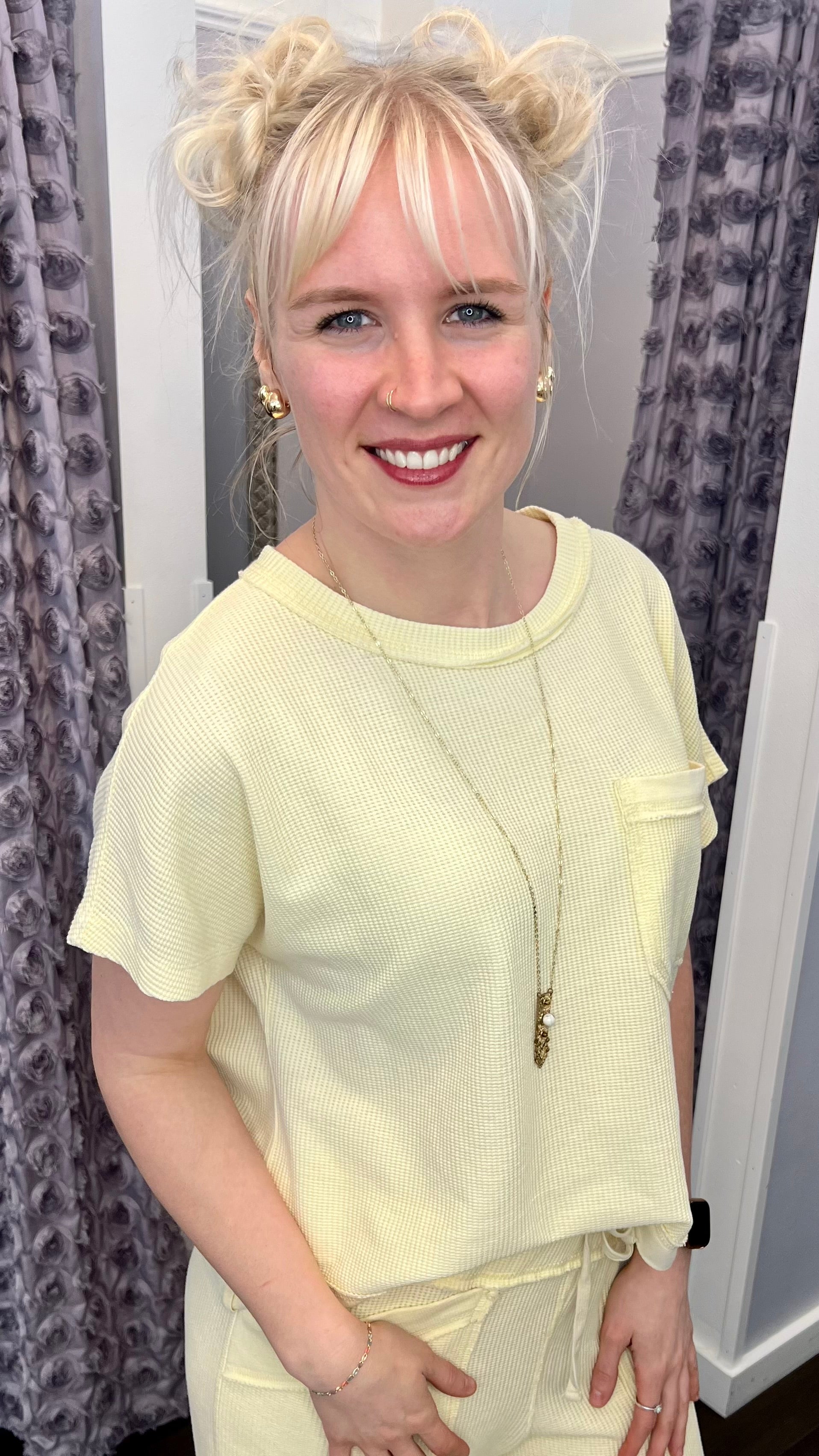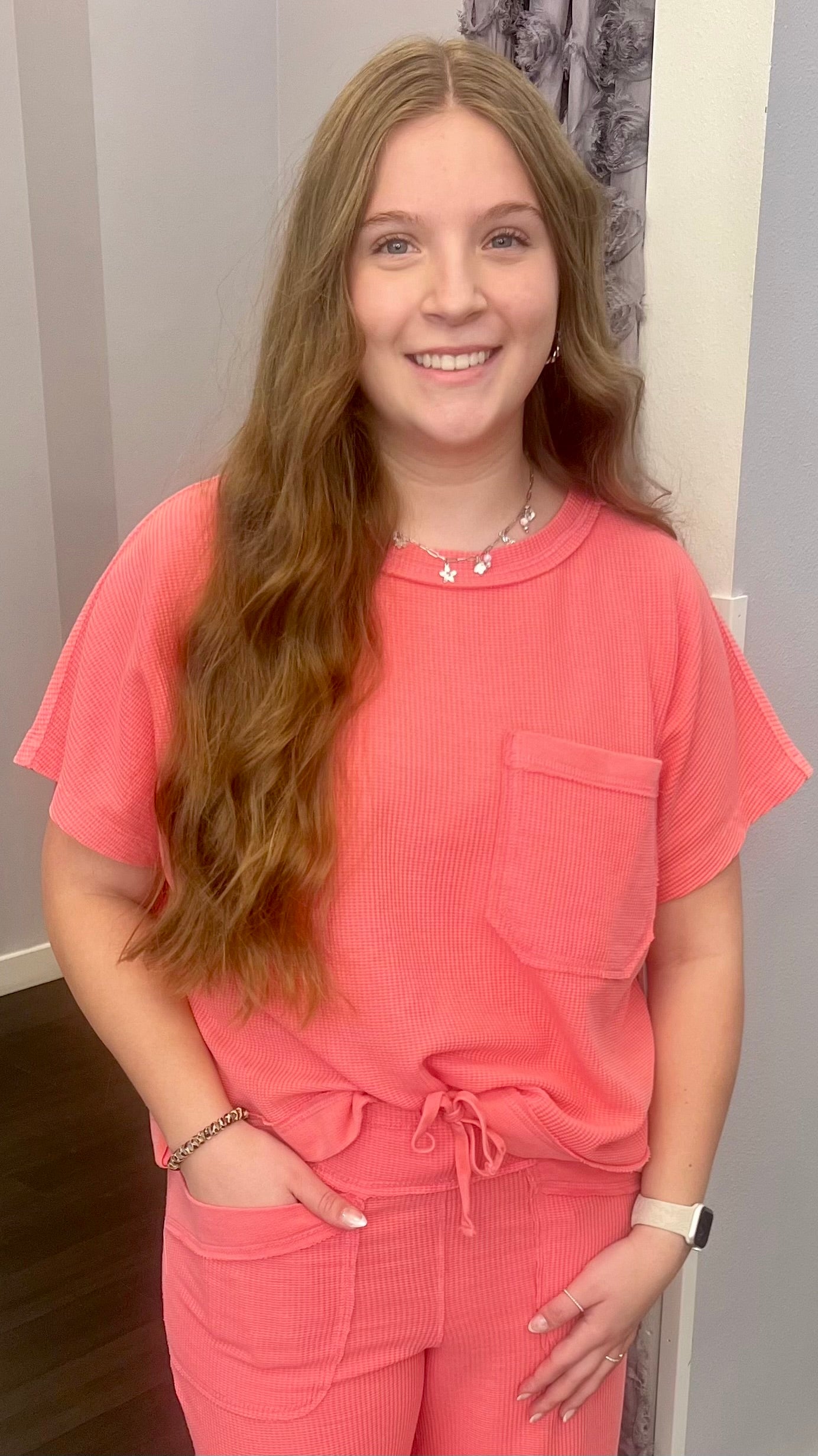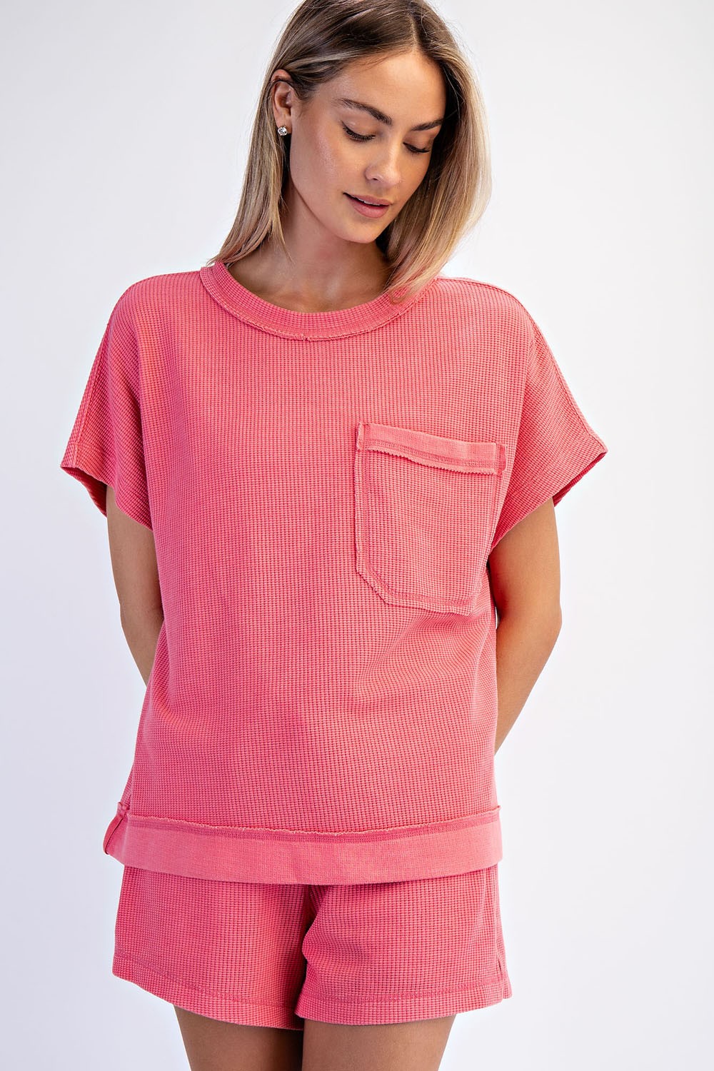 Brighten your warm-weather wardrobe with this playful Strawberry Lemonade Honey Comb Top. Featuring a fresh, on-trend design that captures the essence of spring and summer, this piece pairs perfectly with our matching Honey Comb Pants for a coordinated, Instagram-worthy look. The light, breathable fabric keeps you cool while the vibrant color palette brings joy to every outfit. Perfect for casual outings, weekend adventures, or making a statement at your favorite spots.