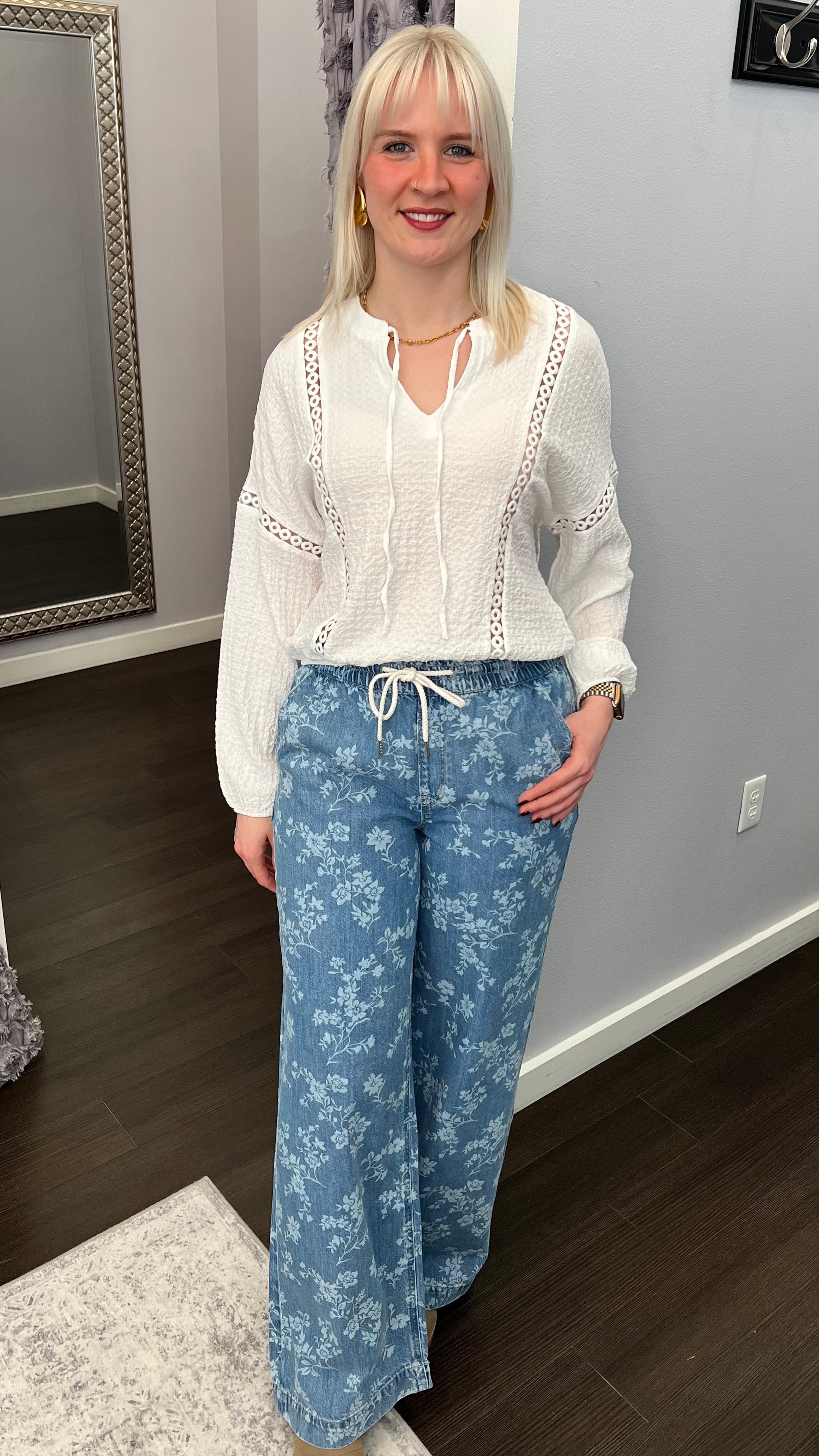 Floaty florals + comfy denim energy = these wide-leg beauties are basically a walk in a spring garden… with pockets.